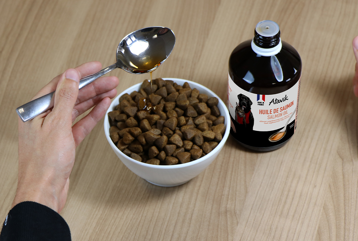 4. L’huile de saumon : l’or liquide du pelage et des articulations