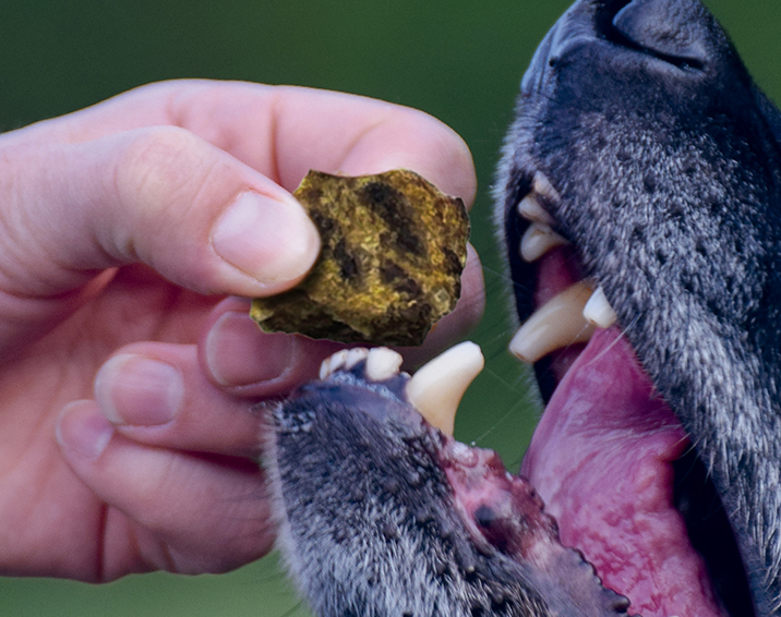 En revanche, sur un chien âgé ou fatigué, des textures trop dures peuvent le conduire à renoncer à la friandise assez rapidement: par douleur, par découragement: il est essentiel de varier et tester les différentes textures afin de trouver celles que votre poilu préfère, et celles qui sont adaptées au moment présent: s’il est fatigué mais a besoin de son petit rituel « Mâchouille »: un cou de poulet ou une herbière de boeuf seront parfaitement adaptées.